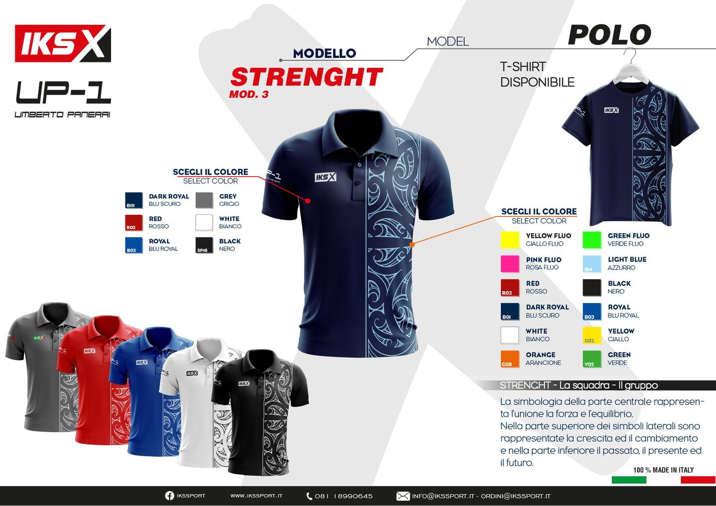 POLO IKS Italian Kit Sport della linea UP-1 in sublimatico prodotta in Italia con tessuto italiano. 100% Poliestere
